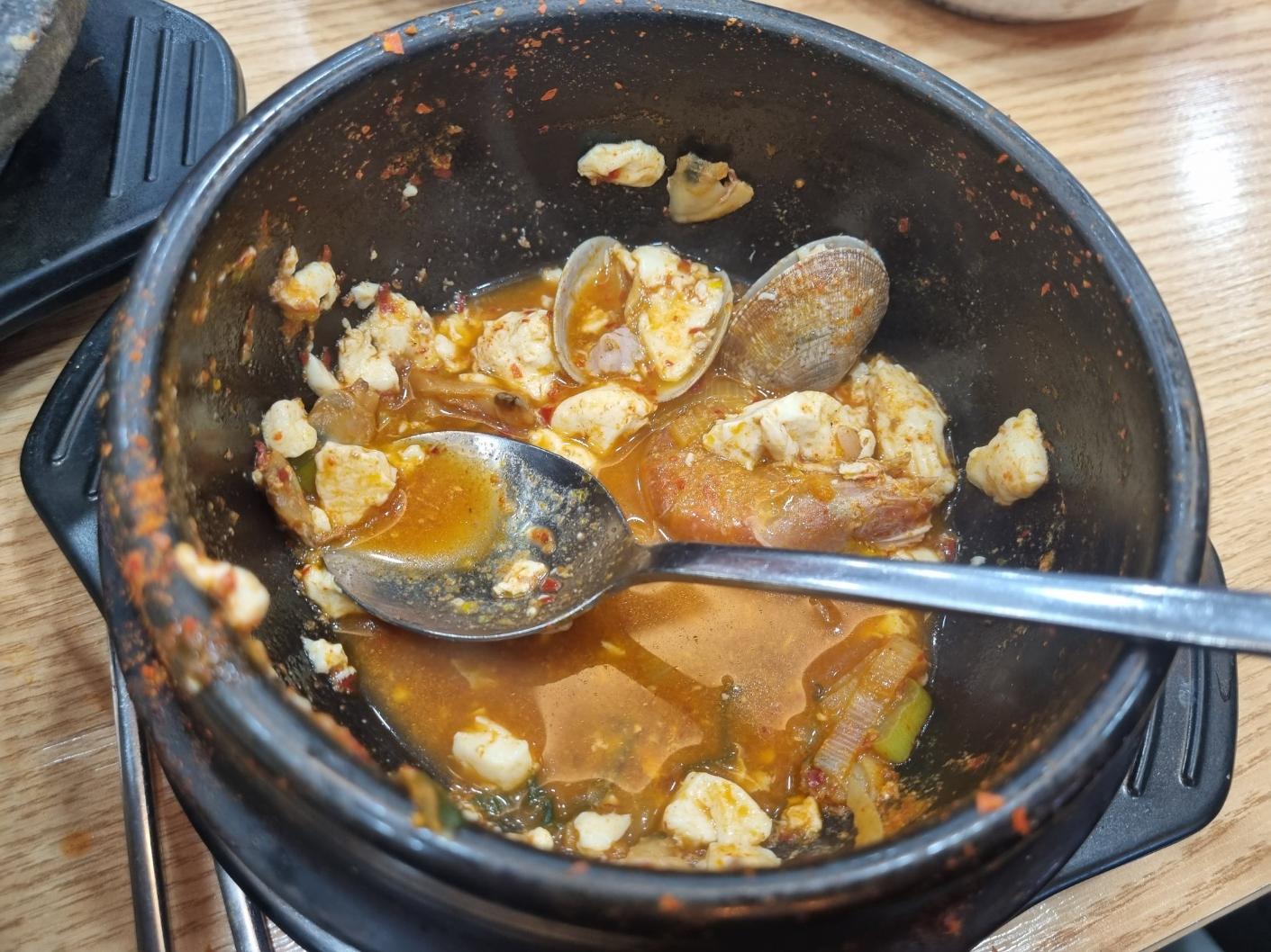 제가 박살낸 명품순두부입니다. 정말 뜨겁고 맛있고, 추운날에 먹기 딱 좋은 음식이었던거 같습니다.